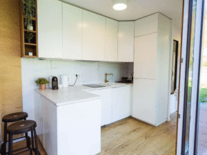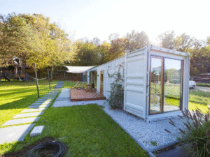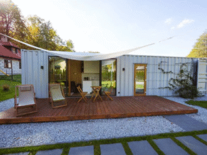 Ce module habitable est construit à partir d’un conteneur maritime de 40 pieds. C’est un formidable module utilisable toute l’année, construit selon les règles de construction en vigueur.