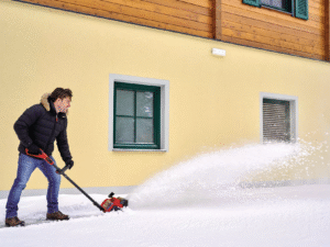 L’appareil est par ailleurs autoportant, ce qui permet de le ménager. L’interrupteur de sécurité à 2 points assure une sécurité supplémentaire, en évitant tout démarrage involontaire de l’appareil. La poignée de transport intégrée permet de déplacer facilement la fraise à neige sans fil. Pendant le fonctionnement de l’appareil, les batteries sont protégées de la neige et de l’humidité par le cache-batteries à obturation magnétique très pratique.